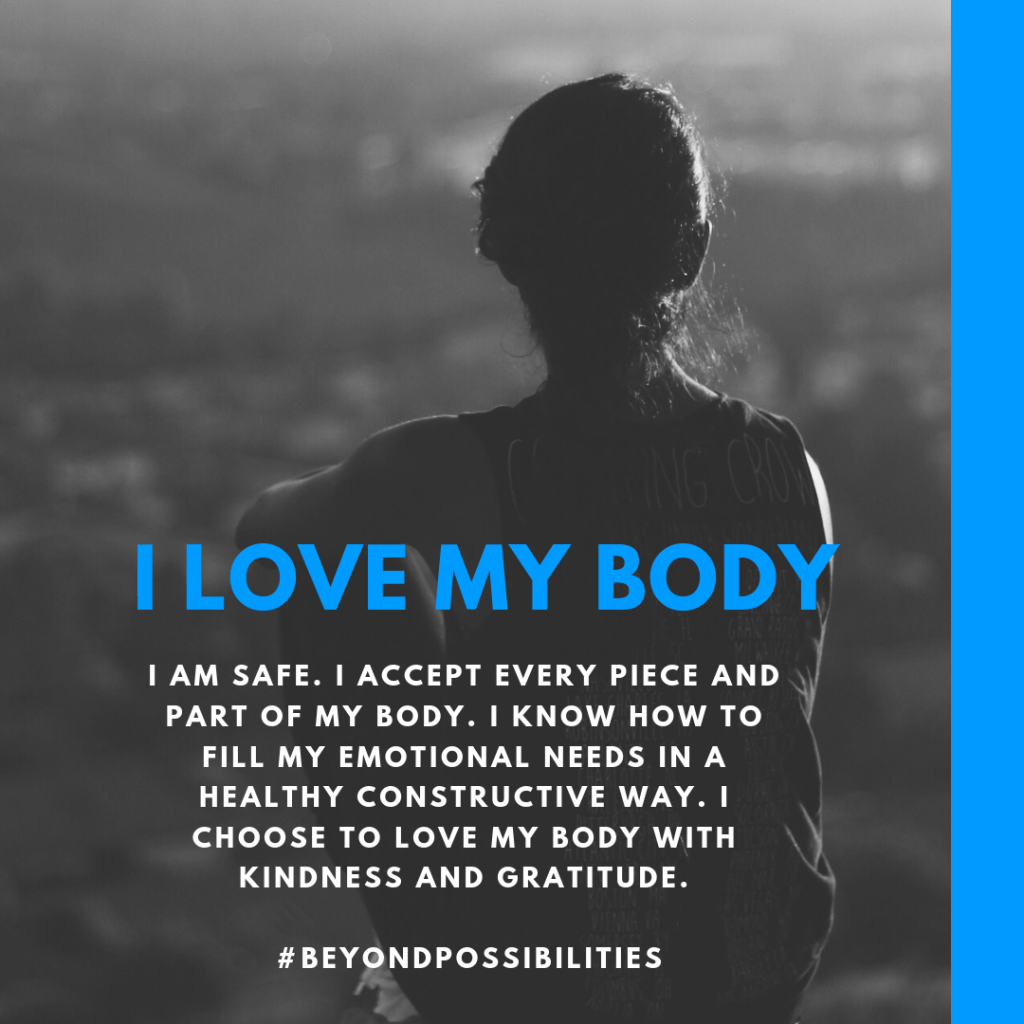 Tapping Technique – tap on your collar bone 10 times repeating the affirmation “I love and accept my body.”