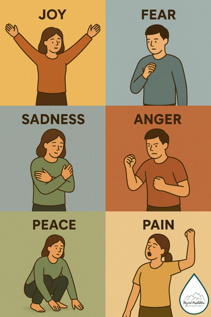 Our feelings naturally manifest in the body. By intentionally choosing movement that mirrors or completes those expressions, we can help the body return to balance. Whether it’s a joyful stretch, a grounding stomp, or a slow restorative breath, each movement is a doorway to recalibration and liberation.